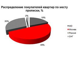 Большинство квартир в проекте приобрели москвичи - почти 50% объектов. Значительную часть квартир купили подмосковные жители.